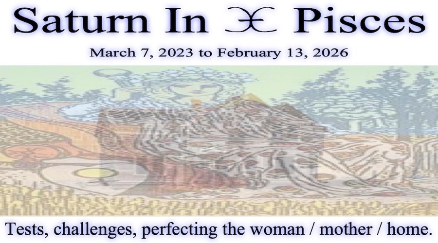 Saturn / Satan... the planet that rules lower human / ego / lower consciousness... moves through the sign of Pisces / woman / mother / home... March 7, 2023 to February 13, 2026.
